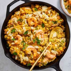 Seafood dressing is a luxurious twist on a traditional Southern classic, combining the rich, savory flavors of the sea with the comforting taste of cornbread stuffing. This dish begins with a base of moist, buttery cornbread, crumbled and mixed with sautéed vegetables like onions, celery, bell peppers, and garlic (Also Known As The Holy Trinty). These aromatic ingredients create a flavorful foundation that perfectly complements the seafood. A combination of shrimp, crabmeat, and sometimes crawfish or scallops is then folded into the mixture, adding a sweet and briny depth that transforms the dressing into a show-stopping side dish or even a main course. The seasoning is what truly makes seafood dressing shine. Creole or Cajun spices are often added to give the dish a bit of heat and complexity—think paprika, cayenne, thyme, and Old Bay. Some recipes include a touch of Worcestershire sauce or seafood stock for extra richness, keeping the dressing moist while intensifying the seafood flavor. The mixture is then baked until golden brown on top and slightly crisp around the edges, with a soft, savory center that bursts with flavor in every bite.Seafood dressing is especially popular during the holiday season or at Sunday dinners in the South, where it often replaces or complements traditional turkey or chicken dressing. It pairs beautifully with roasted meats, gumbo, or collard greens, and it’s an absolute hit on any festive table. The combination of cornbread and fresh seafood makes this dish both hearty and elegant, offering a taste of comfort and coastal flair in every spoonful. Whether served as a side or the main attraction, seafood dressing is a true celebration of Southern culinary creativity.